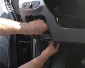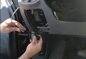 Platzieren Sie das Modul auf der linken Seite des Armaturenbrettes und verstauen Sie die Antenne. Anschliessend den OBD Stecker aufstecken.
